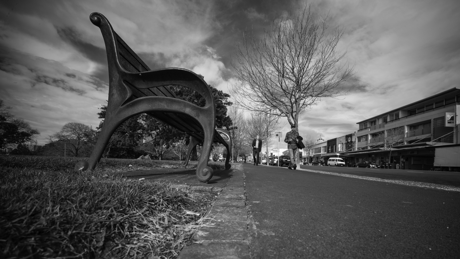 Went for a walk to Ponsonby on Tuesday for an appointment, and took the mighty Monochrom + VC15 + Manfroto table top tripod combination. Allowing 90 minutes for a 40 minute walk I managed to get a few interesting shots. The one above on Hopetoun Road at the lookout over Western Park. The one below on Ponsonby Rd, the guy walking into shot was trying to work out what I was doing. Really like an ultra wide angle lens shot at ground level.